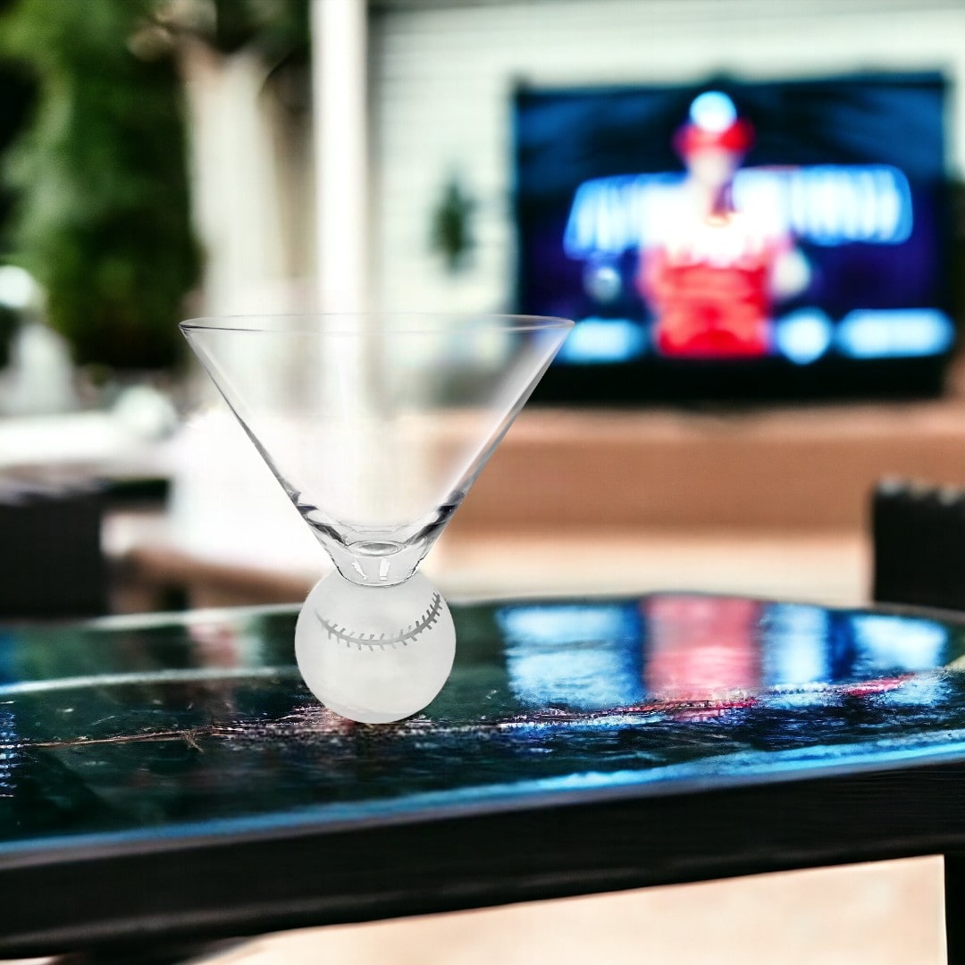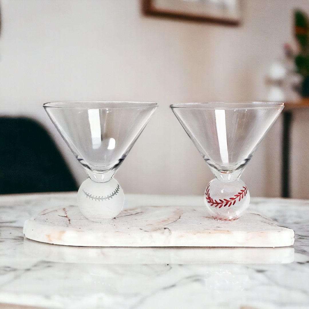 Choose from the clear glass baseball painted with red or the frosted glass baseball. Add a modern touch to your home and bar area with our uniquely crafted martini glasses.