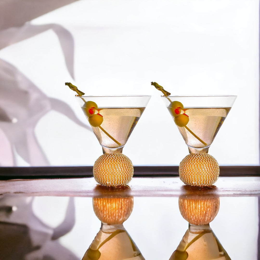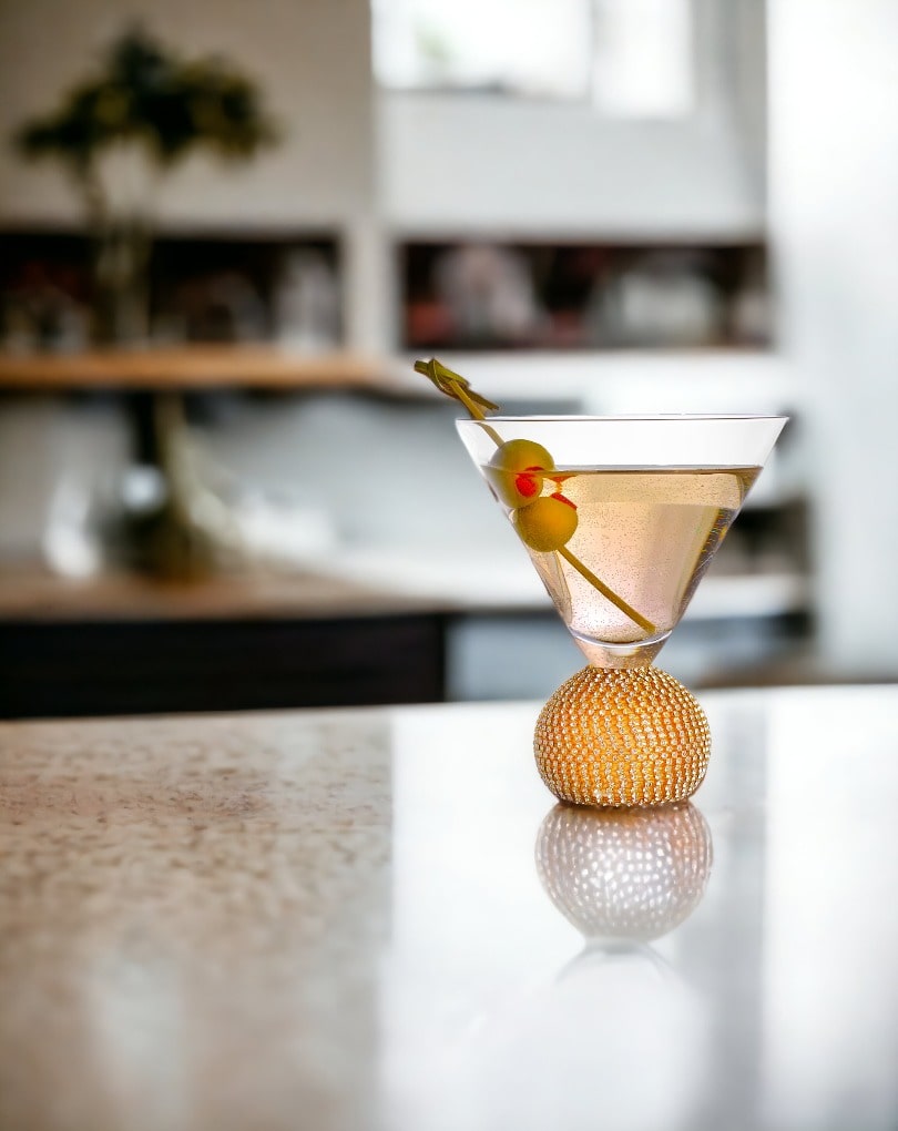 Crafted with bright rhinestones, the base of the glass creates a fun buzz to your martini