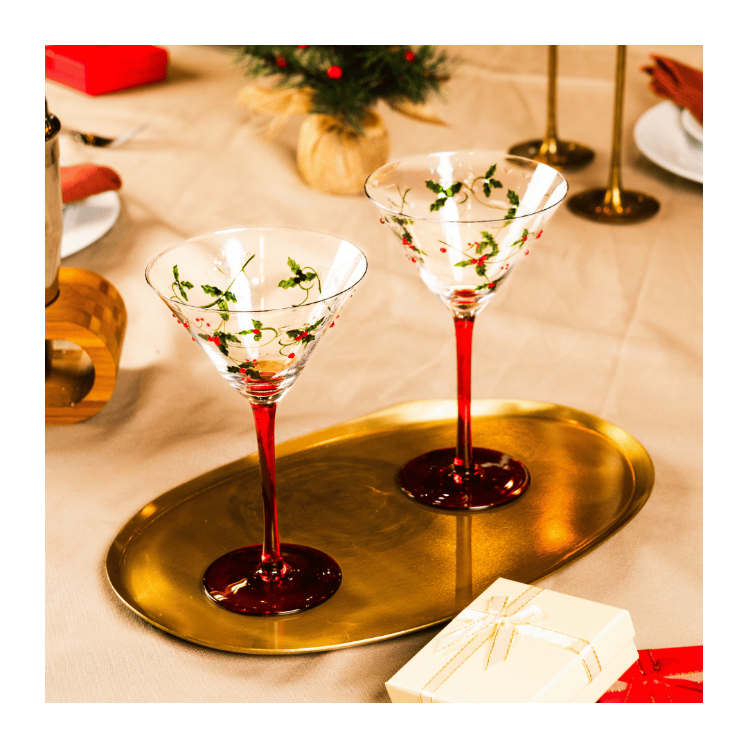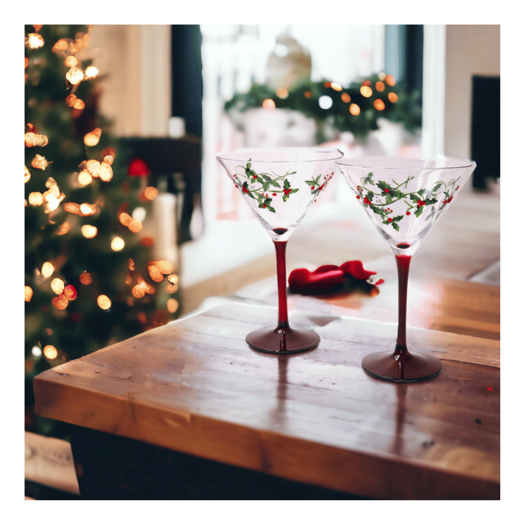 Christmas Holly Martini Glasses