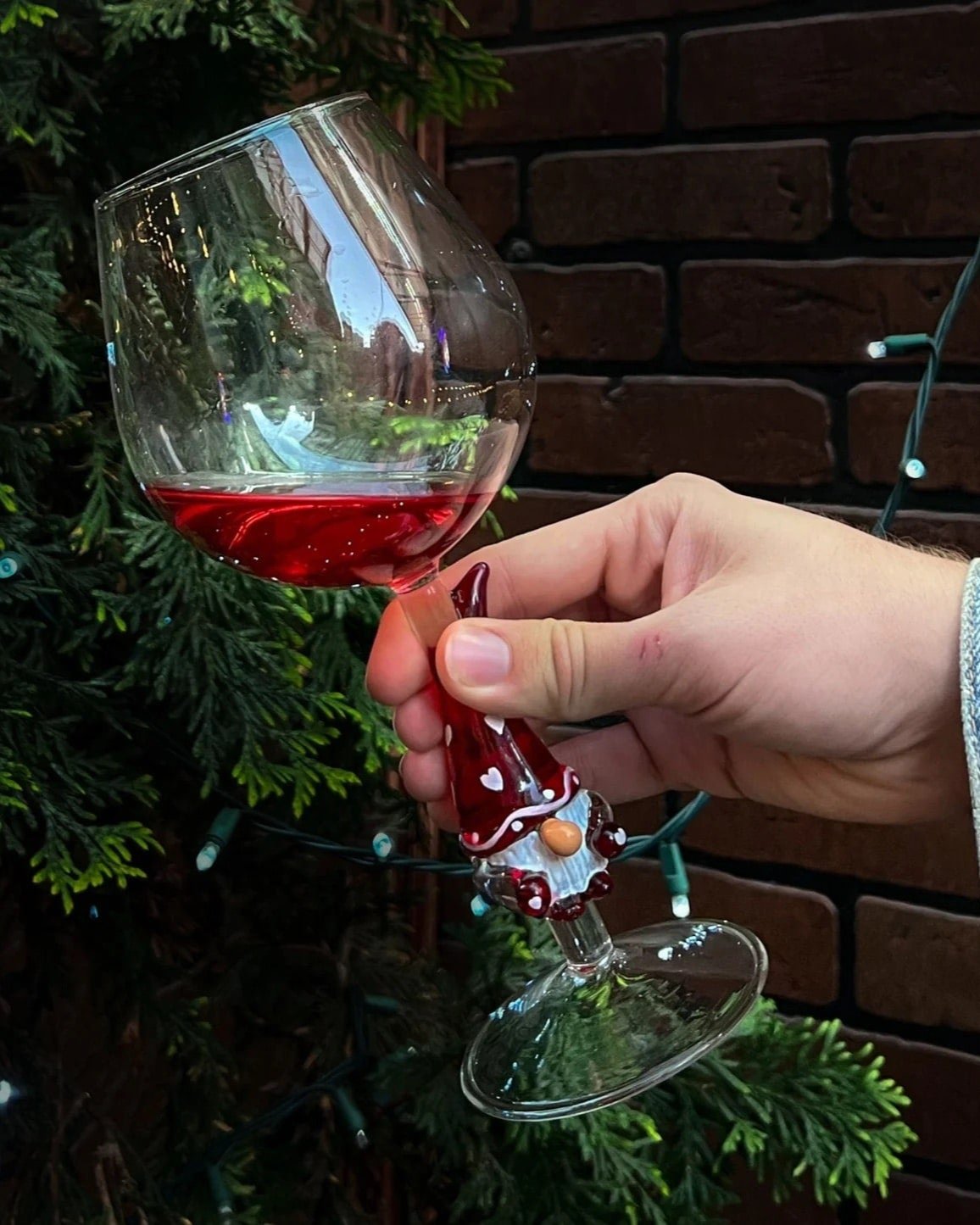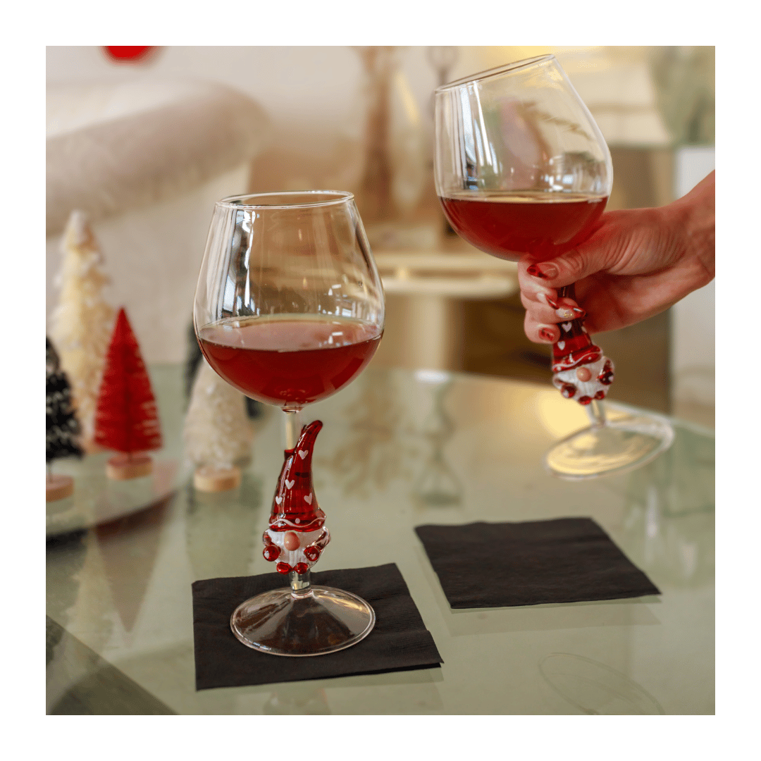 Our 3D hand blown glass gnomes are etched into the stem for a one-of-a-kind sipping experience