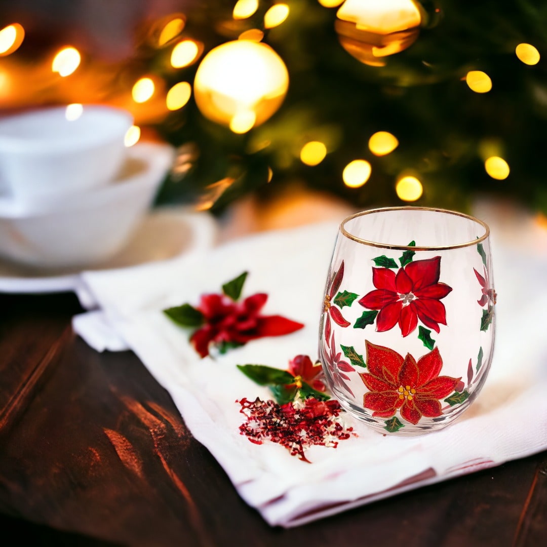 Bring the Holiday Spirit into your home & gatherings with these festive poinsettia glasses